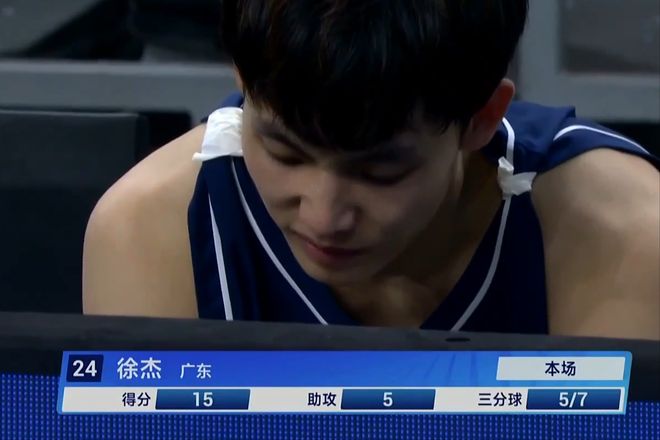 广东队王睿泽16分4抢断,胡明轩8分8助攻,周鹏3分9篮板,赵睿13分4篮板6助攻,沈梓捷9分4篮板,徐杰得分王三分10中6得到18分7篮板9助攻,正负值是+38全队最高。贺希宁7分,杜润旺11分,刘传兴11分5篮板,李炎哲5分6篮板。